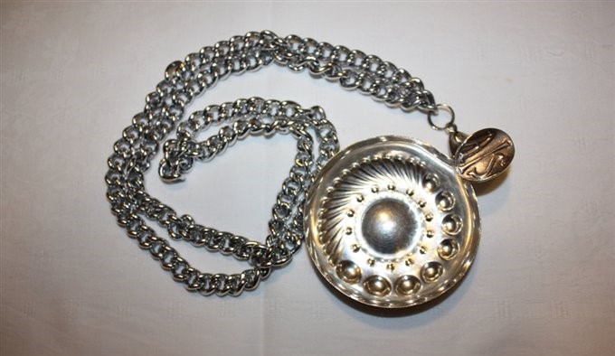 ワインのソムリエが、首から下げている灰皿のようなものを見て