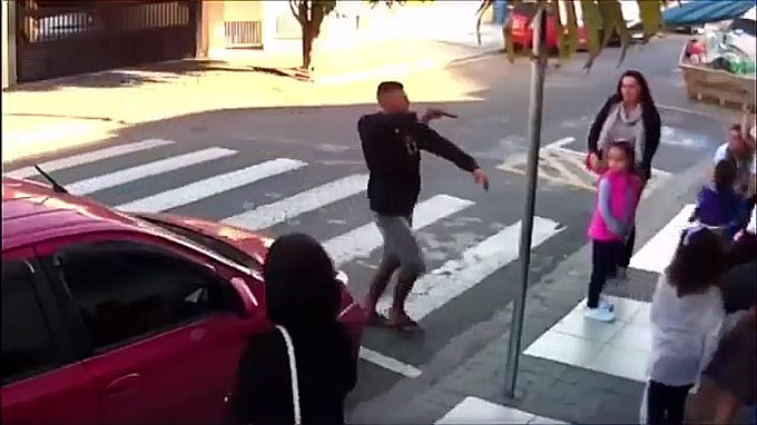 ブラジル・サンパウロで学校へ行く母子グループに襲い掛かかった銃を持った強盗に衝撃の結末が待っていた!