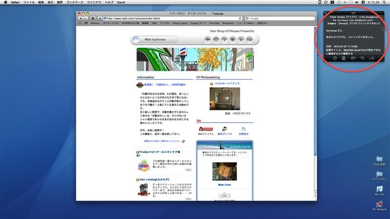Mac / メール受信でデスクトップにお知らせ表示