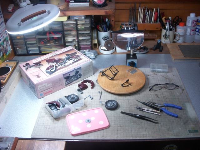 久しぶりに本気でプラモを作ってみたくなったので 作りかけで放置中のハーレーFLH80の製作...
