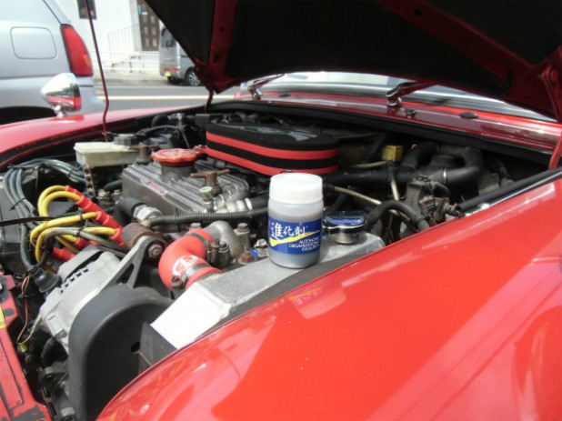 それと、作業性を向上させるためにタイヤハウジング内からエンジンルームに手が入るようにハウジングの鉄板を切り抜くという荒技も実行したみたい・・・