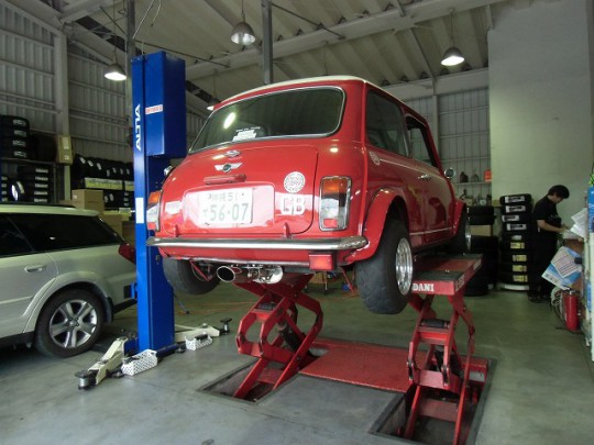過ぎた日曜日(11/17)にOMCメンバーのサックーガレージでキクヤマ号(1997ローバーミニ)のメンテナンスが行われました(手前のBRGreenのミニ)